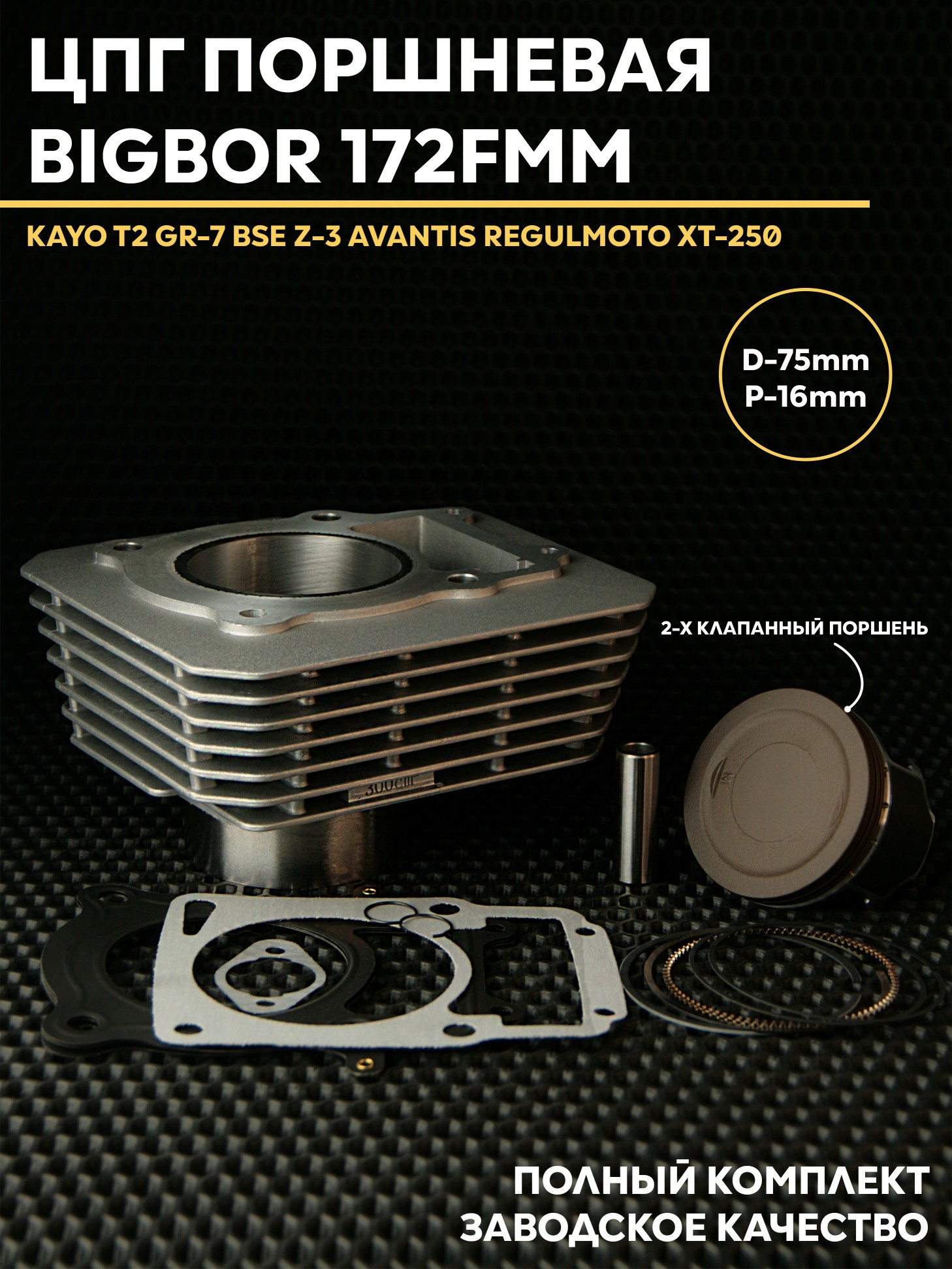• Применение: мотоциклы KAYO T2, GR-7, BSE Z-3, AVANTIS, REGULMOTO, XT-250