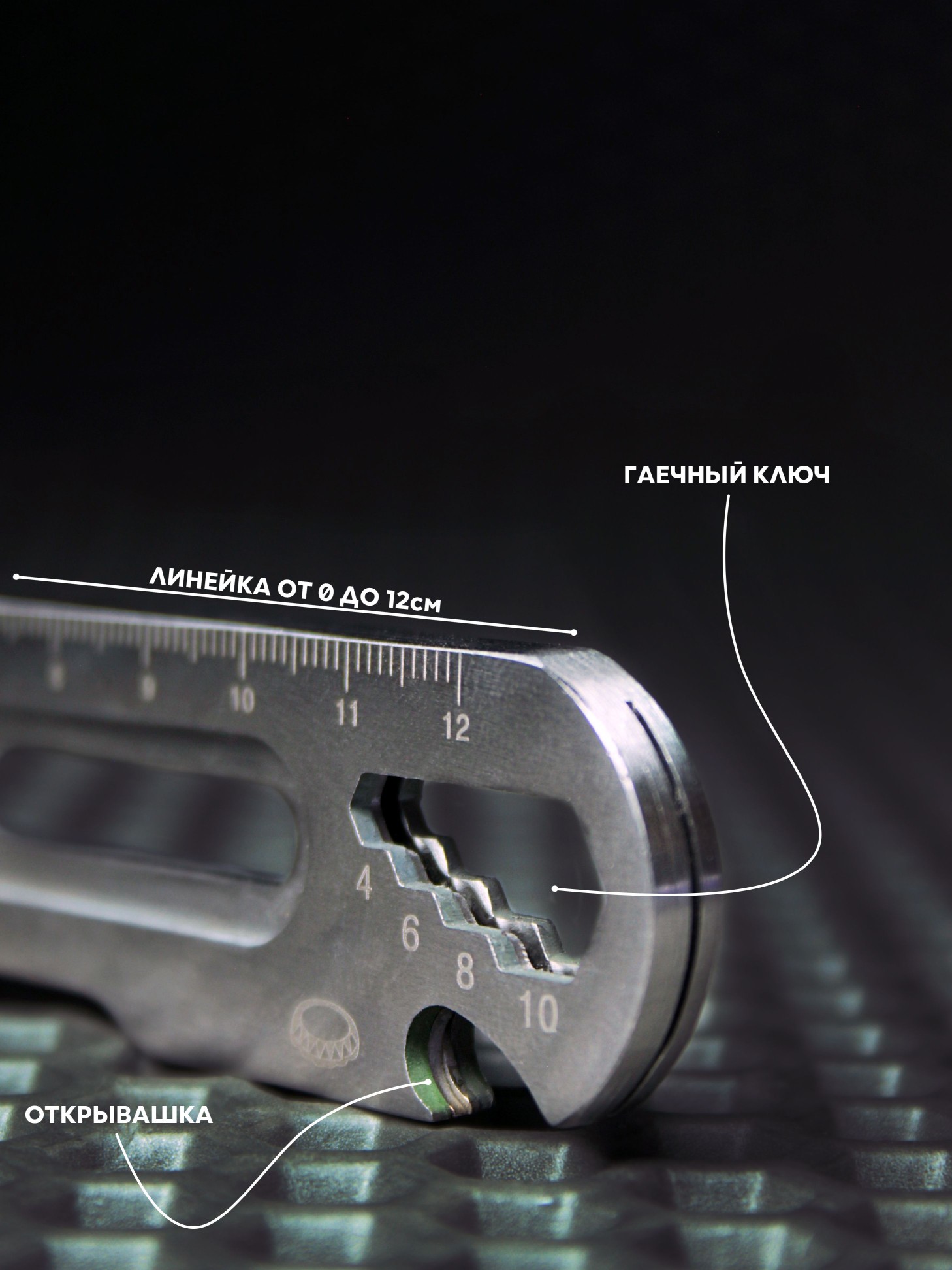 Многофункциональный, 5 в 1 (нож, отвертка плоская, линейка, накидной гаечный ключ, открывашка)